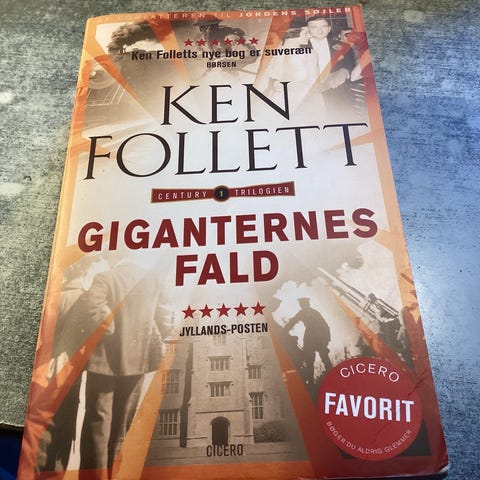 Ken Follett Gigant ernes fald bog. Dansk udgave af romanen, indbundet med omslag. Historisk roman, første bind i en serie om flere familier gennem det 20. århundrede.