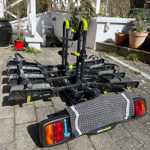 Buzz Rack Scorpion cykelholder til anhængertræk til transport af 2 elcykler.