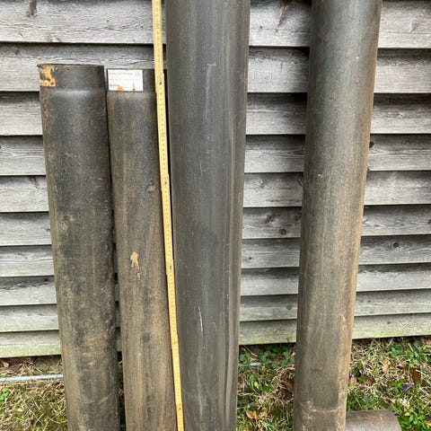 Røgrørsdele som nyt. Ingen sod eller slager. Toppen er ny. Det er ø 150mm