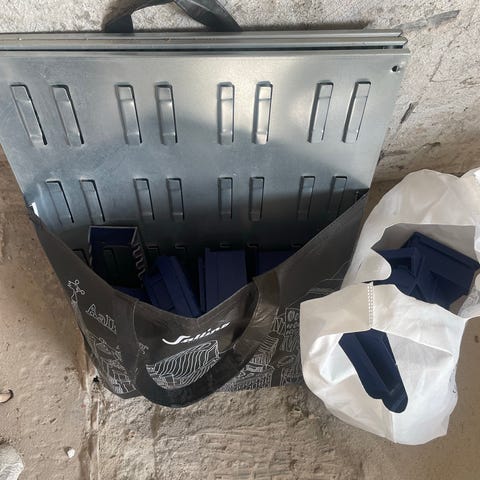 Metal opbevaringskasser i skuffesystem i grå farve. Systemet består af aflange metalskuffer med håndtag foran og mulighed for montering af skillevægge i siderne. Skufferne er velegnede til opbevaring og sortering af smådele, værktøj eller andre mindre genstande i værksted, garage eller lager. Mål fremgår af billederne med tommestok for længde, bredde og højde af skufferne.