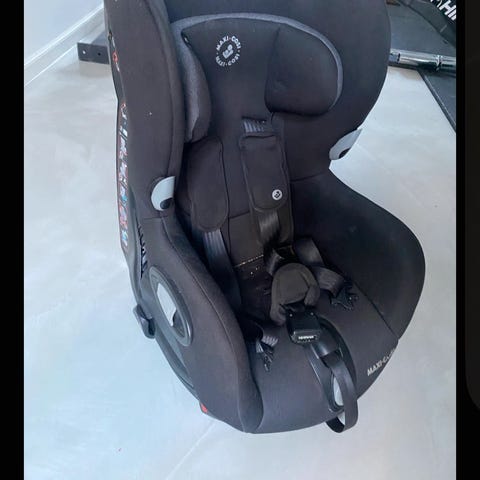 Maxi-Cosi autostol i størrelse 36 i sort stof. Autostolen har justerbar ryg, som kan tilpasses barnets højde