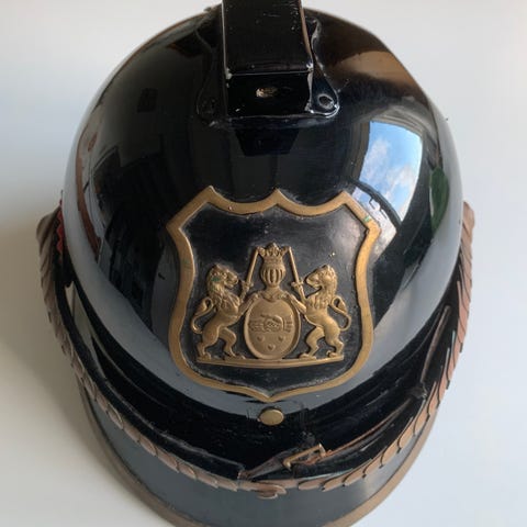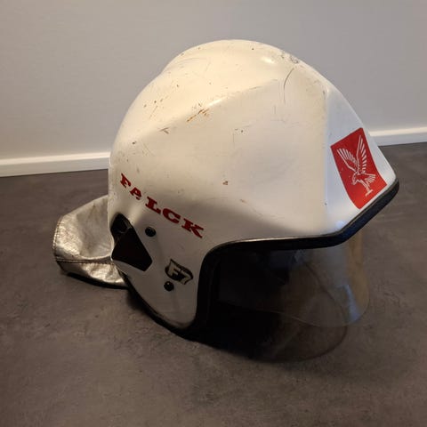 Danmarks Radio sikkerhedshjelm hvid med læderrem