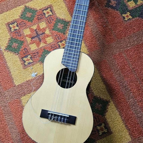 Yamaha GL1 guitalele akustisk guitar i naturtræ. Modellen er en kombination af klassisk guitar og ukulele i et kompakt format. Kroppen er udført i træ med naturfinish, og instrumentet har seks strenge samt klassisk hoved med stemmeskruer. Velegnet som rejseguitar, til øvning derhjemme eller til brug for både begyndere og øvede, der ønsker en mindre akustisk guitar.