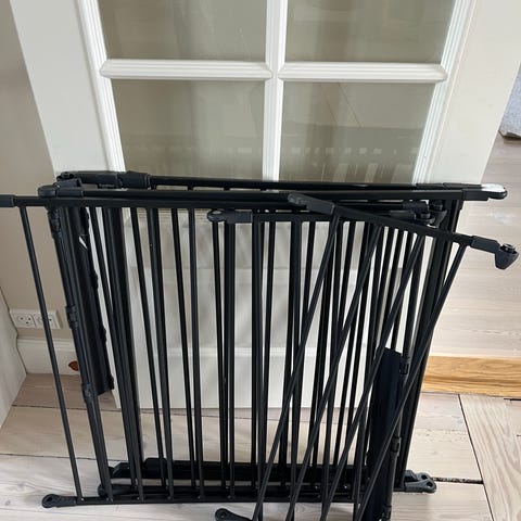 BabyDan sikkerhedsgitter i hvidlakeret metal. Gitteret er beregnet til montering i døråbninger eller ved trapper. Babygitter.