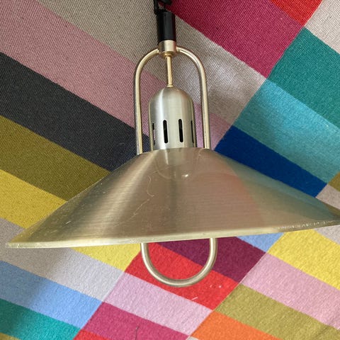 Pendel, Antik loftlampe med hvid glasskærm og messing detaljer. Diameter 14,5 cm