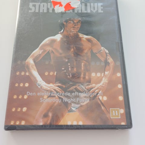 Staying Alive DVD film. Film i DVD-format med originalt cover. Forsiden viser hovedpersonen i træningstøj, og bagsiden indeholder kort resumé af filmen samt tekniske oplysninger om format og spilletid. Egnet til afspilning på standard DVD-afspillere.