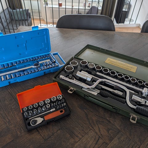 Bahco topnøglesæt og skraldenøglesæt i plastkuffert. Sættet i kufferten indeholder toppe i forskellige størrelser, skraldenøgle, forlængerled, bitsholder og bits. Der medfølger desuden et separat sæt kombinationsskraldenøgler i forskellige størrelser, samlet i en holder. Velegnet til generelle mekaniske og tekniske opgaver, hvor der er behov for både topnøgler og skraldenøgler.