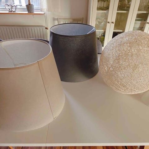 Hvid lampeskærm i tekstil. Inspireret af rispapirlampen. Aldrig brugt