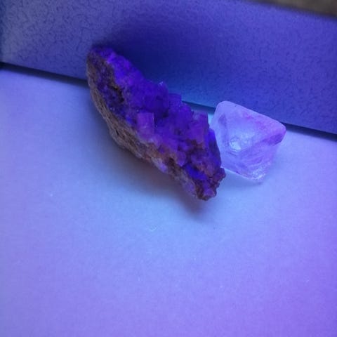 6 stykker smukke fluorit sten i grønne og lilla neuancer sælges samlet.
