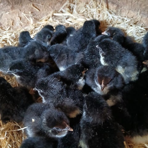 6 kyllinger efter grønlægger og maran, så flere farver æg, når de kommer dertil. De er 5 uger og man kan ikke se hvad der høner og haner. Sælges kun sammen for 30 kr. stk. P.s.