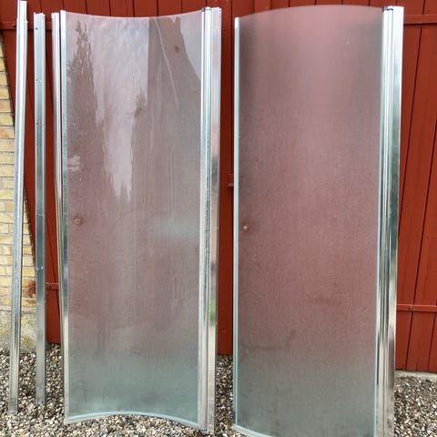 Brusevæg i klart glas til bruseområde i badeværelse. Væggen er udført som en fast glasafskærmning med metalprofil i siden og i toppen. Egnet til installation direkte på gulv med afløb eller i brusezone. Passer til moderne badeværelsesindretning med åbent brusemiljø og kan kombineres med vægmonteret brusearmatur og bruser. Overfladen er glat og let at rengøre, og konstruktionen giver en enkel og funktionel afskærmning af bruseområdet.