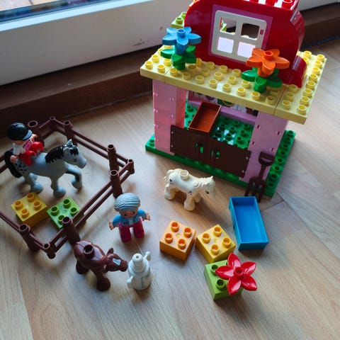 Lego Duplo, 10500, Stald eller rideskole, rytter hest føl pony staldpasser