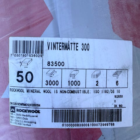 2x Rockwool vintermåtter og en pose Rockwool A-batts 95 mm