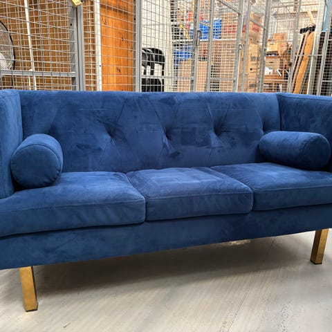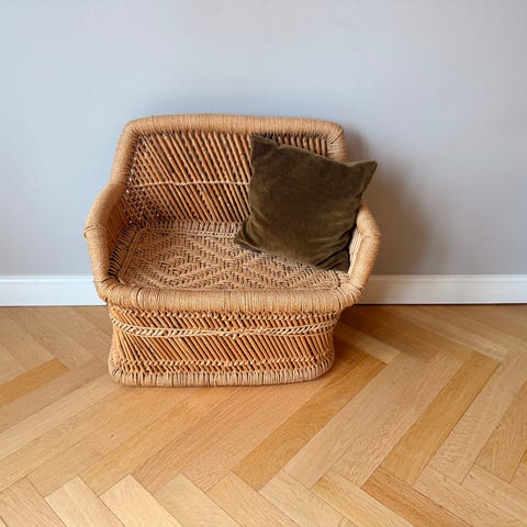 Fin lille børnesofa i flet - fletten er gået lidt op ved benet og der er et lille sort mærke på. Men er ellers i fin stand