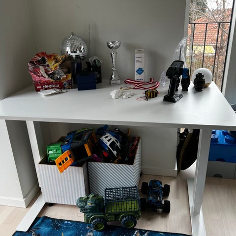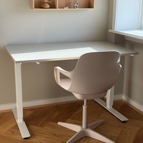 Sælger dette super praktiske og kompakte hæve/sænkebord fra IKEA i hvid. Det fungerer med et manuelt håndsving, hvilket er helt genialt, da du slipper for grimme ledninger og kan placere bordet præcis, hvor du vil i rummet – uafhængigt af stikkontakter!