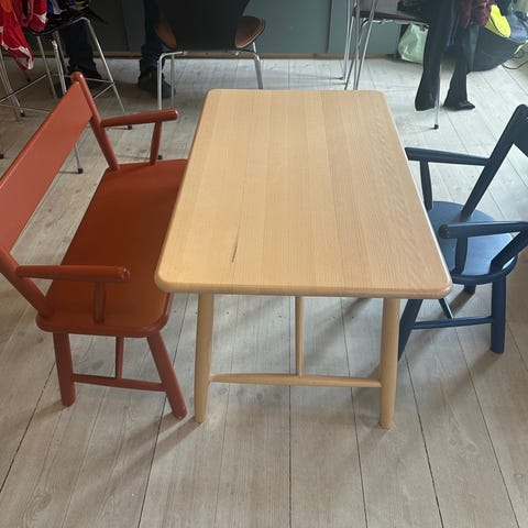 Super fint sæt, kan bruges både til børnebord og sofabord. Begge i sæbebehandlet eg, er dog lakeret for bedre holdbarhed.