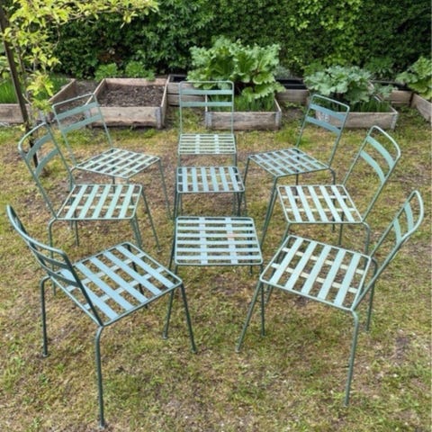 Cafésæt bord og 2 stole træ og metal