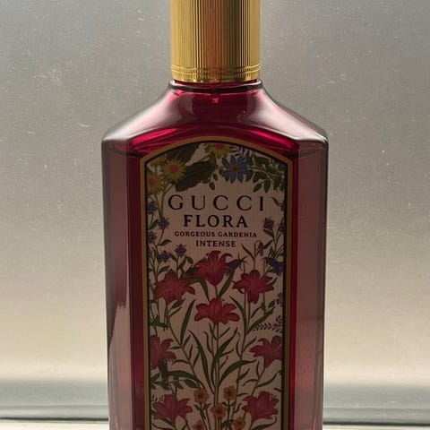 Gucci Bloom Intense parfume eau de parfum på 100 ml. Flakonen er ugennemsigtig, så det kan ikke ses hvor meget der er brugt. Men jeg har max brugt 10ml