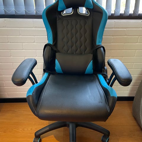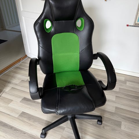 Gratis! Fin Junior gamerstol med slid på sædet gives væk. Virker som den skal. Passer til børn ca 6-12 år. Afhentes i Sorø.