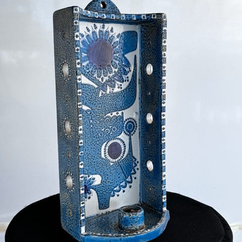 Royal Copenhagen fajance lysestage rund blå/hvid