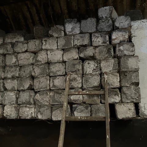 Lecablokke i overskud fra renovering.