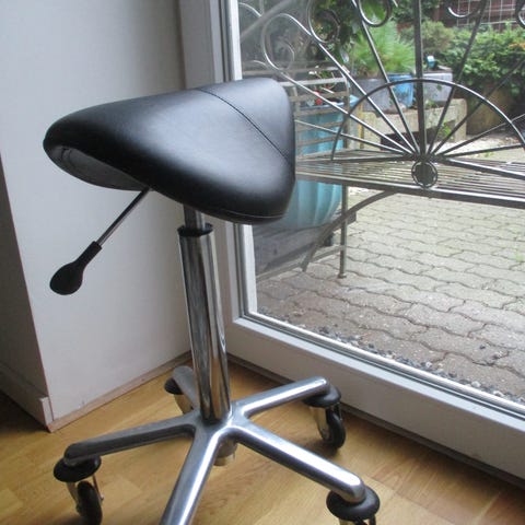 Sadelstol sælges da jeg ikke bruger den længere. Fejler intet. Max højde 84 cm, Min. højde 60 cm.