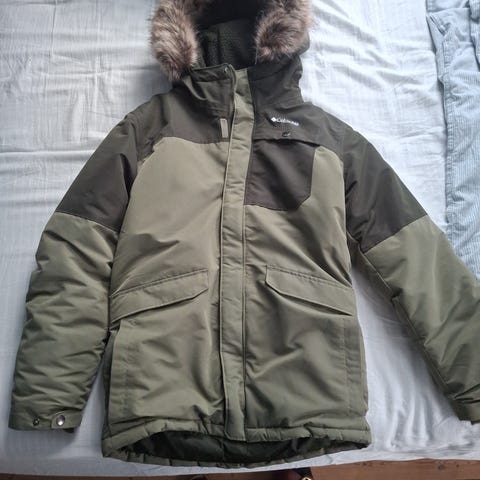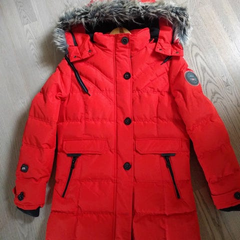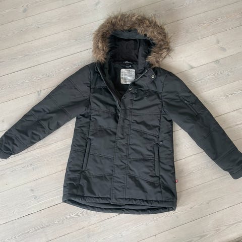 Lækker dun vinterfrakke med aftagelig hætte. Fra Ver de Terre i str 14. Farven er chokoladebrun. Fremstår som næsten ny kun brugt 1 sæson.