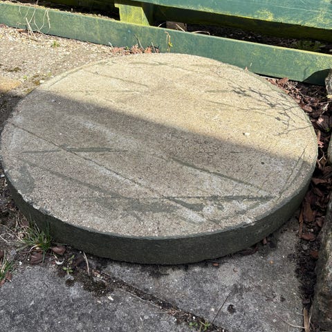 2 stk betondæksel på 50 cm i diameter og 7 cm tykke. Nyprisen er omkring 300 kr stykket online, kan hentes for 100 kr stykket.