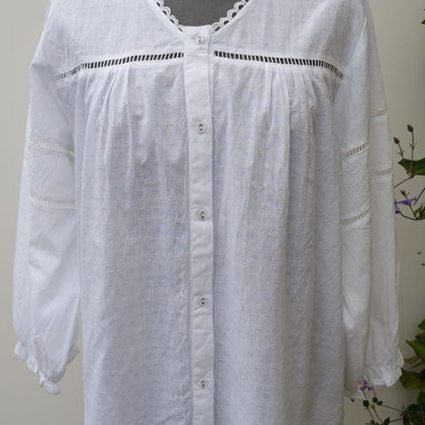 Med to skrå lommer måler 2x50cm over bryst og længden er 108cm.