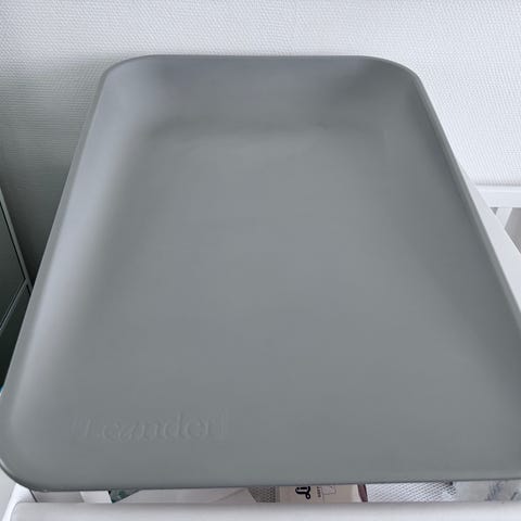 Leander puslepude i beige farve. Rektangulær form med let forhøjede kanter hele vejen rundt for at give barnet støtte under pusling. Overfladen er glat og kan tørres af med en fugtig klud. Egnet til brug på puslebord eller anden stabil overflade i hjemmet. Velegnet til daglig pusling af spædbørn og småbørn.