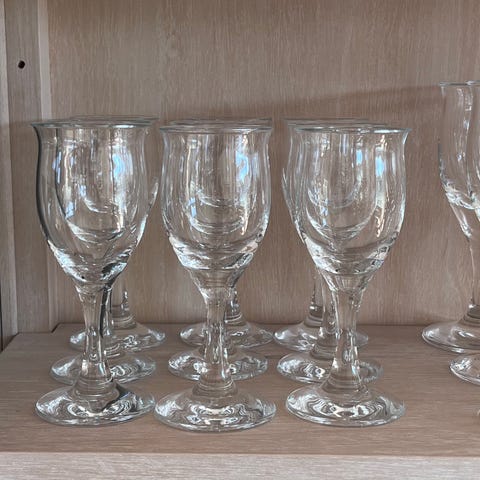 Holmegaard Idéelle glas. Sættet omfatter glas i klart glas, velegnet til servering af fx vin og snaps. Designet har en klassisk form med stilk og fod, som gør glassene egnede til både hverdag og festlige lejligheder.