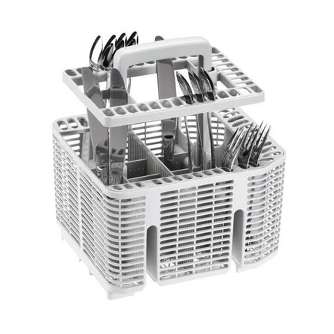 Helt ny og ubrugt Miele bestikkurv til opvaskemaskine i grå plast. Kurven har flere rum til organisering af bestik og små køkkenredskaber under opvask. Udstyret med bærehåndtag og perforerede sider og bund for gennemskylning af vand. Velegnet som udskiftning af eksisterende bestikkurv i kompatible opvaskemaskiner.
