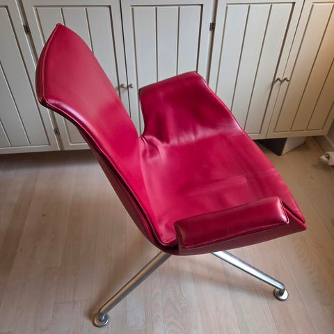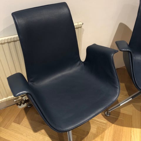 Lænestol Preben Fabricius, model 710 med stel af forkromet stål, armlæn, sæde og ryg samt løse hynder betrukket med antracit anilinlæder. Formgivet i 1972 og produceret hos Walter Knoll.