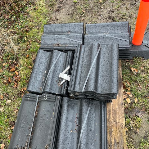 11 pakker (55 stk) Tagsten i sort. Egnet til tagdækning på hus, skur eller lignende byggeri.