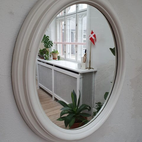 Vægspejl, b: 60 h: 81, Antik spejl. Facetslebet og med patina.