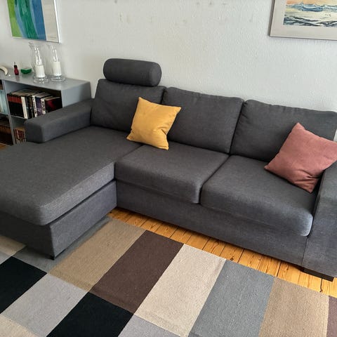 Antracitgrå venstrevendt chaiselong fra 2018.