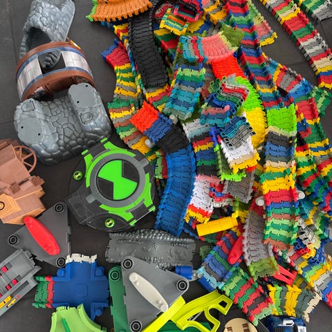 2 store kasser Flexi Trax - har stået i kælder noget tid og trænger til en klud - deraf prisen. Mange timers leg.