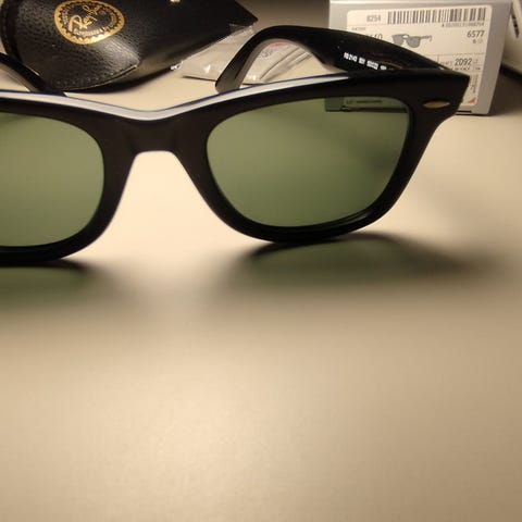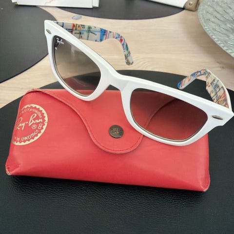 Ray-Ban Wayfarer briller til unisex i sort stel. Modellen har klassisk Wayfarer-form med fuldramme i plast. Stellet er håndlavet i Italien. Glassene fremstår klare med almindelig glas uden styrke i, og brillen leveres med originalt Ray-Ban etui i brunt kunstlæder med trykknaplukning.