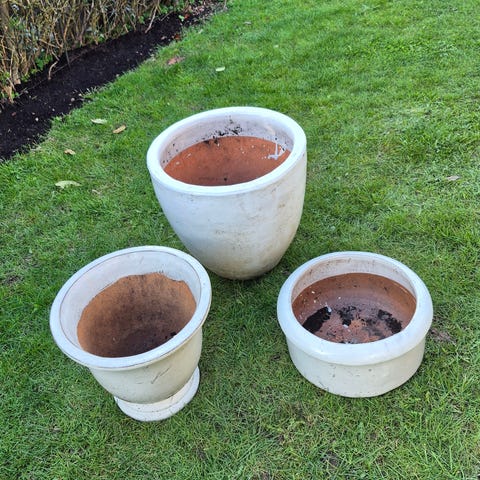 Havekrukker velegnet til udendørs brug på terrasse, altan eller i haven. Det viste målebånd angiver omtrentlige højde- og bredemål, så størrelsen kan vurderes.