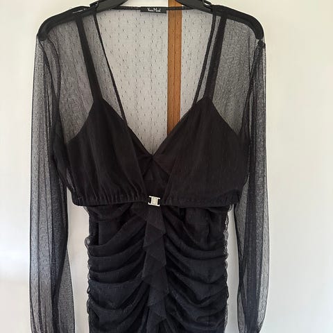 Meget smuk kjole med tilhørende transparent bolero med lukning.
