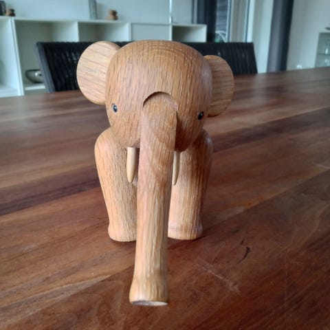 Kay Bojesen elefant træfigur. Klassisk dekorationsfigur udformet som en elefant i træ, velegnet som pynt i hjemmet og som helårsdekoration til forskellige højtider.