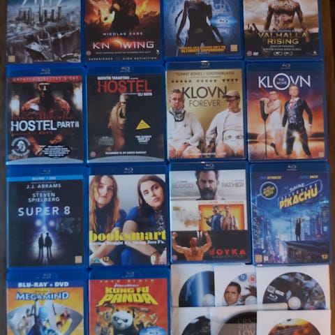Blandet lot med blu-ray film og Wii spil. På billederne ses blandt andet blu-ray titler som The Dark Knight Rises, Top Gun, The Smurfs 3D, We Were Soldiers, Titanic, Monsters University, The Croods, Grusomme Mig 2 og Toy Story 3 samt flere andre film. Derudover medfølger Wii spil, herunder Just Dance 3, Star Wars: The Force Unleashed og Alone in the Dark. Lot sælges samlet som vist på billederne.