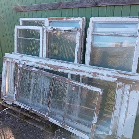 SKØNNE, GAMLE VINTAGE VINDUER og et par døre - NOK TIL ET HELT ATRIUM eller UDERUM eller UDESTUE eller DRIVHUS…