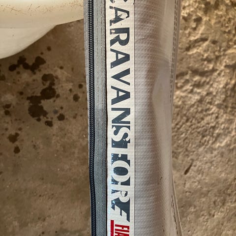 Fiamma Side W Pro C.Store White sidevæg til markise i hvid og grå med stort klart vinduesfelt. Sidevæggen er beregnet til montering på markise, f.eks. på campingvogn eller autocamper. Udført i kraftigt, vandafvisende materiale med forstærkede kanter og fastgørelsespunkter i hjørnerne. Klart plastvindue giver udsyn og lysindfald.