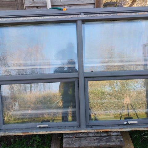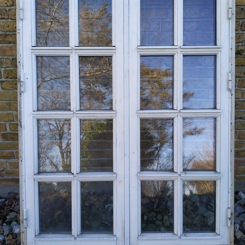 2 stk. bondehusvinduer med termoglas mål ca. 120 x 120 kr. 300 pr. stk.
