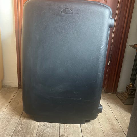 Samsonite børn kuffert i hård plast i orange farve med sort mønster. Kufferten er unisex og har indvendige elastikstropper til at holde indholdet på plads. Den åbnes på midten og lukkes med spænder i siden. Egnet som rejsekuffert til tøj og personlige ejendele.
