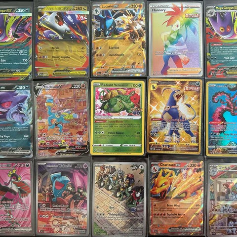 Sælger 12 flotte Pokémon kort bestående af Full Art og Illustration Rare (IR) fra forskellige sæt.