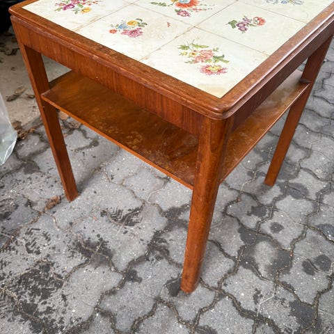 antikt sofabord i teaktræ