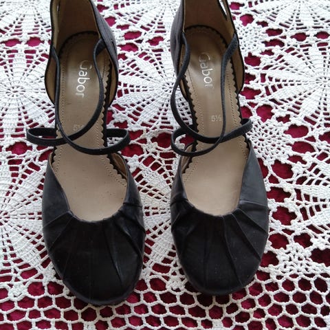 Gabor festsko til dame i str. 38. Skoene er i rød farve med rem over vristen og lille hæl. Overdel i glat materiale med afrundet snude. Egnet til brug ved festlige lejligheder og som pæne hverdagssko.