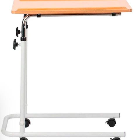 Sengebord på hjul og med tipbar bordplade. Bordet kan justeres i højden. Køres fint ind til seng og sofa, eller stol.